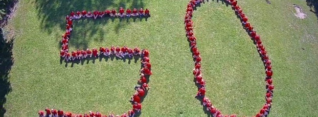 At lunchtime, the school gathered on the field for a whole-school picnic, along with music, games and a special aerial photo opportunity (see above).